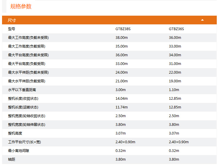 ● 工作高度-不受限:38.00m和36.00m
