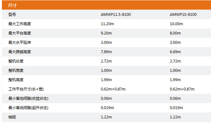 ● 工作高度:11.20m和10.00m