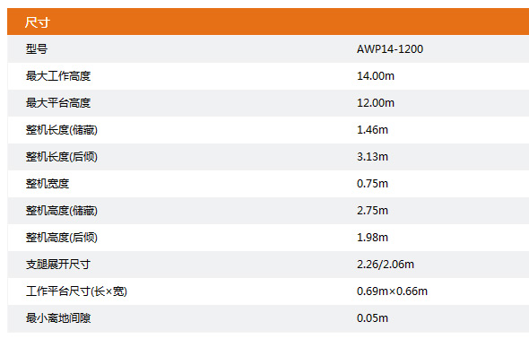 ● 工作高度:14.00m