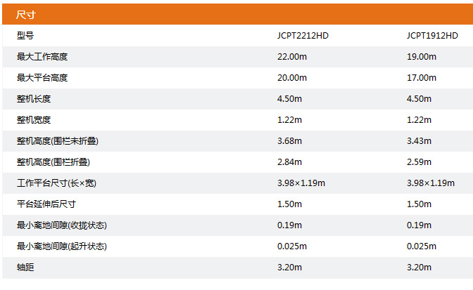 工作高度:22.00m和19.00m
