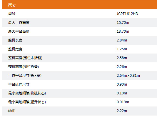 ● 工作高度最高可達(dá)到15.7m,是業(yè)內(nèi)同類型產(chǎn)品無法到達(dá)的領(lǐng)域
