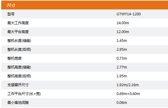● 工作高度:14.00m